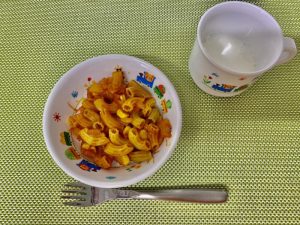 かぼちゃマッシュは甘くて柔らかく、食べやすいのか、スプーンやフォークを使い上手に食べていました。