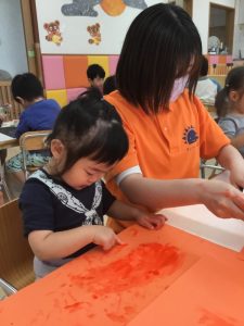 時々顔にも絵の具がついちゃう子も…..それもまた可愛らしい姿です(❤´艸`❤)