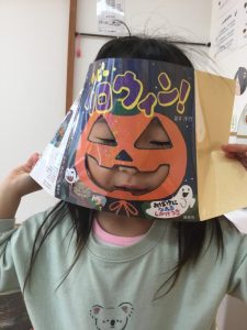 絵本のカバーを顔に当てて「ジャックランタン🎃」になって楽しみました😄