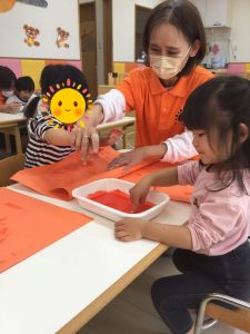 オレンジ色の絵の具を塗って🖌「ハロウィンのかぼちゃ」作り🎃