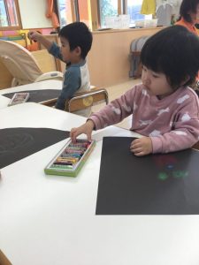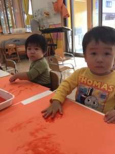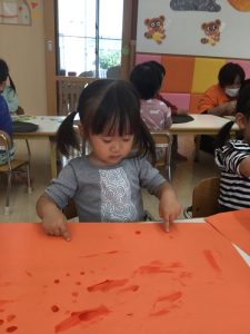 指でツンツンと付けたり、ダイナミックに手のひら全体で塗ったり楽しんでいましたよ😄