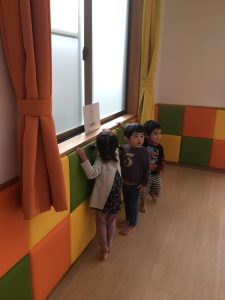 次はお部屋の色んな所に置いておいた英語のカードを探しに行きます。