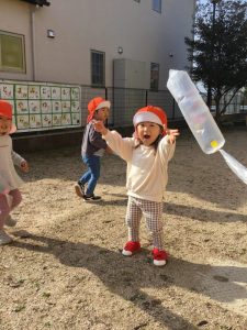 上に向かって投げるのは少し難しかったけど「フワフワ」っと飛ぶと大喜びq(≧▽≦q)