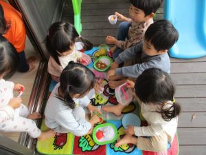 「このまま外で給食が食べられたらいいね」「お弁当🍱を持ってミニ遠足に行けたらいいなぁ」