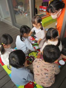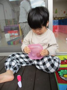 テラスにおままごとを持ってきて「ピクニックごっこ🍱」