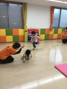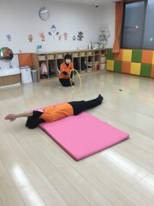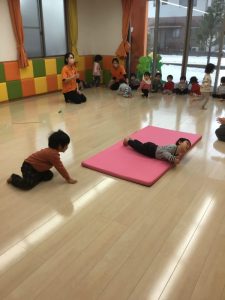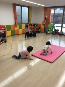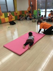 保育士が側で補助をしながら、頑張ってみんなコロコロ出来ました