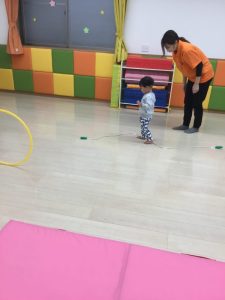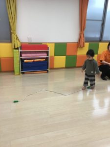 縄のクネクネ道と、フープくぐり、マットコロコロ〜 頑張りましたよ!
