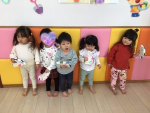 そこでみんなで並んで「おもちゃのチャチャチャ」の合奏![]()