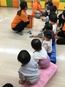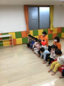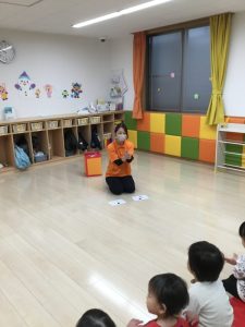 「こぎつね」の歌に合わせて、音符記号を身体で表現しますよ〜♪