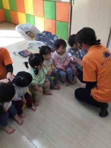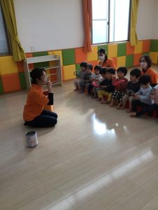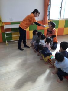 もも組さんはいつもお名前を呼ぶとお返事が上手なんですが、今日はお名前を聞いたら上手にいえるようになりましたよ👍