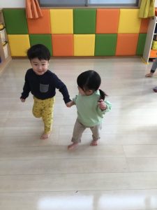 最後はピアノの音に合わせて、お友だちと歩きます👭