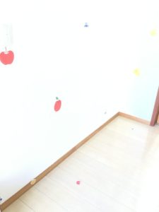 廊下に貼ってある、自分のブレスレットと同じ色のシールを集めに行きますよ🍎🚙🐣