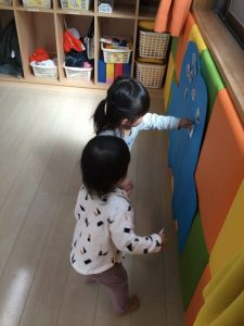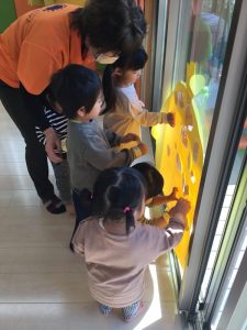朝登園すると、廊下にシールがたくさん貼ってあり、なんだろう?😕と眺める子も…。