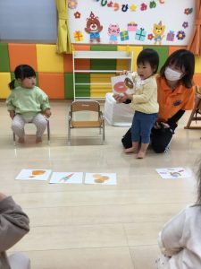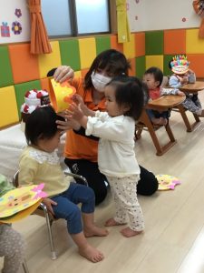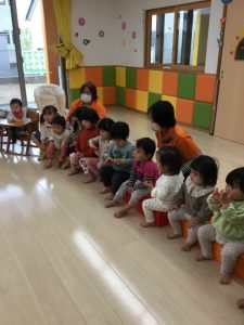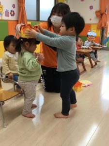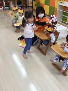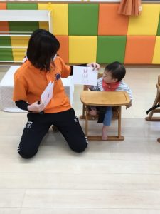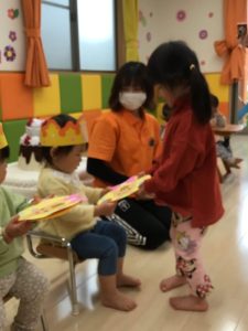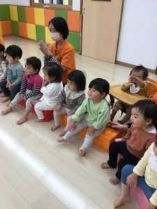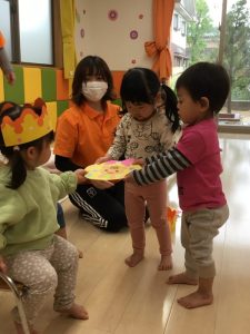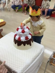 誕生会の日にお休みだったお友だちは、翌日の朝の会の時にみんなにお祝いしてもらいました![]()