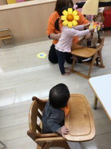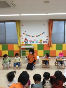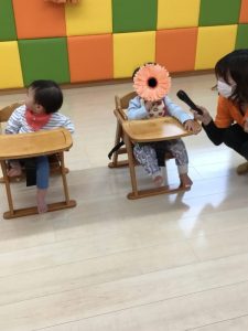 誕生日のお友だちはみんなの前のゲスト席に座ります![]()