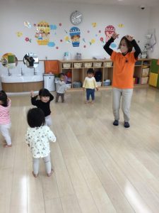 まずはリズムにのって「おはよう」のごあいさつからです。