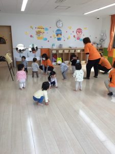 次はうさぎさんになってピアノの音に合わせて跳びますよ🐇