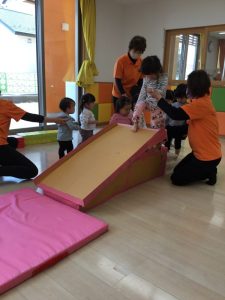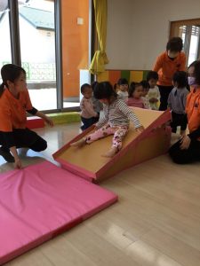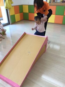 元気に登園して来てくれているお友だちは「お楽しみデー」と称して公園に出掛けたり、手作りすべり台で遊んだりして楽しく過ごしましたよ![]()