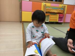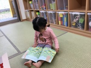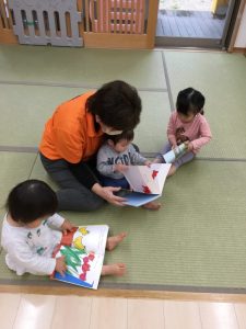 自分の絵本を大切に見たり、新しい絵本を読んでもらうことで今まで知らなかったお話の面白さに出会ったり、ハラハラ感などを味わうことができるので、「絵本の世界は奥が深いなぁ~」といつも思います。