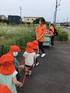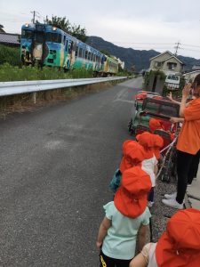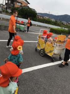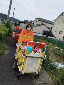 もも組さんといちご組さんは散歩車でのお散歩で~す![]()
