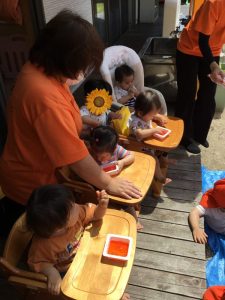 色水遊びやシャボン等で子どもたちが楽しそうに遊んでいる様子は、また後日のブログでお伝えしますので楽しみにしていてくださ~い![]()