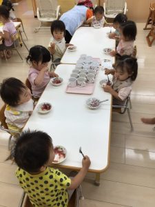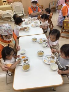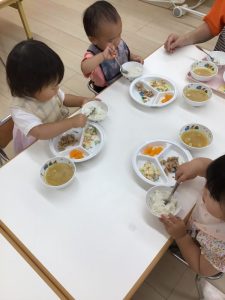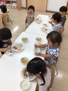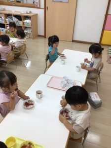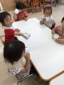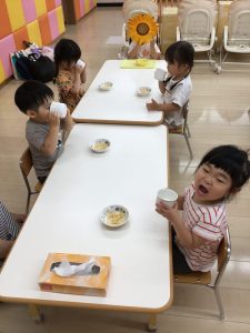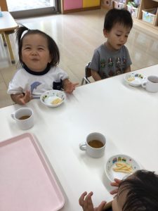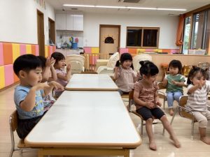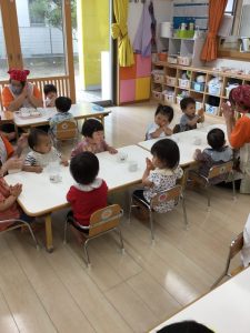今週は日々行われている朝の会やおやつタイム、給食の様子など保育活動以外での子どもたちの様子や表情をお伝えしていきたいと思います。