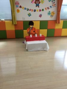 同じクラスのお友だちやお兄さんたちからカードやかんむりをもらったり、先生から不思議がいっぱいの手品を見せてもらったりしてテンションマックスの子どもたちでした