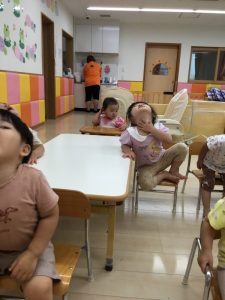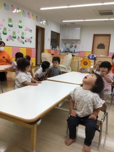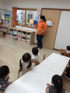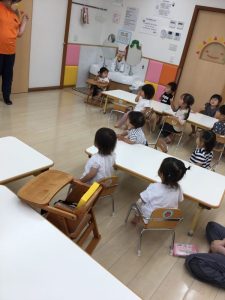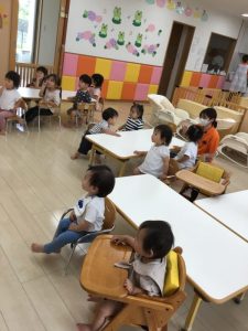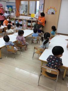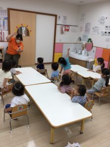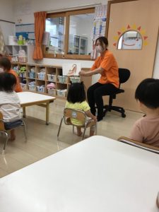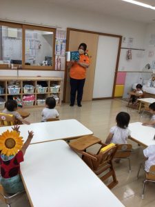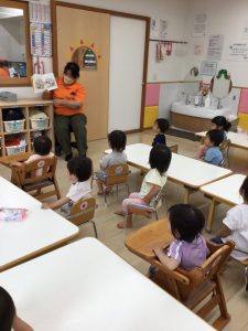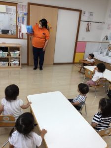まずは、おやつの後に読み聞かせをして、みんなで楽しみました