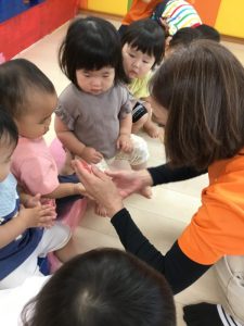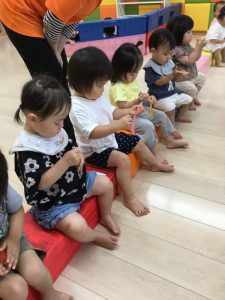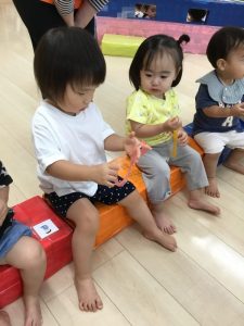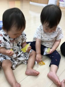 もも組さんはジッパー付きの袋に入れて遊んでいます![]()