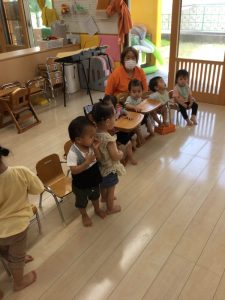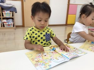 今回のようにクラスのお友だちが同じ絵本を持って見ているのは、子どもたちにとって不思議な事のようで、隣のお友だちの絵本と自分の絵本を何度も見比べていて微笑ましかったですよ![]()