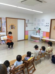 いっぱいのお友だちと一緒に読み聞かせをしてもらうのも良いのですが、3~4人という少人数でゆっくり絵本に親しむ時間を持つのもいいですよね![]()
