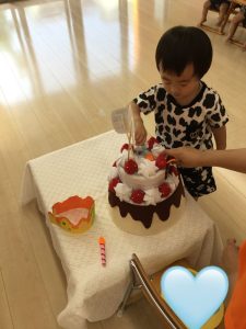 今月のバースデーケーキは、お誕生日のお友だちが大好きな乗り物やキャラクターがいっぱい飾られた世界に一つだけのケーキでしたね