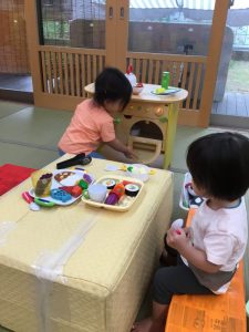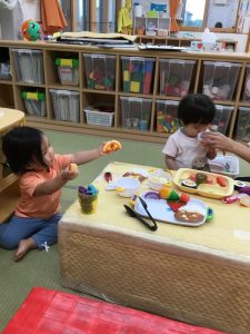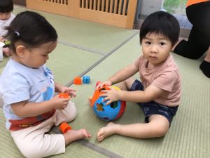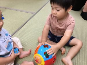 今回はお盆期間という事で登園児が少なかったのですが、お互いに良い刺激を受け合いながら、楽しく遊ぶことが出来ました![]()