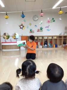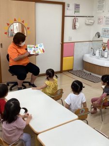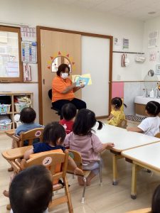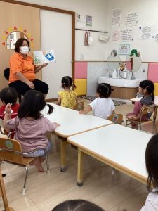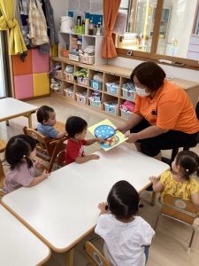 çµµæ¬ã®èªã¿èãããéããŠãè¿ãã«åº§ã£ãŠããåã ã¡ã«èªç¶ãšå£°ãæãäžç·ã«æ¥œããããšã§ãåã ã¡é¢ä¿ãåºããããšããããã§ãã![]()