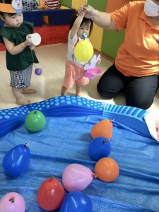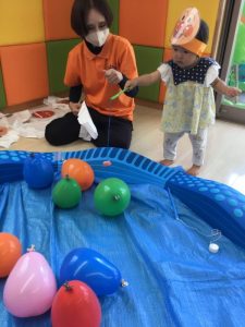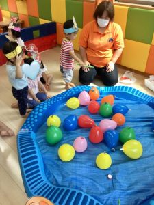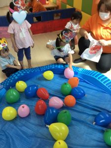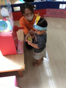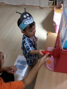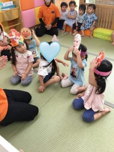 保護者の皆様に事前に聞いておいたお子様のいちばんお気に入りのキャラクターのお面を用意したり、子どもたちが楽しめそうなコーナー遊びを考えたりして、夏祭り当日を楽しみにしていた先生たちでした![]()