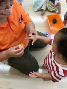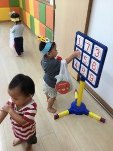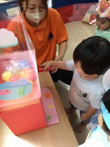 ガチャガチャコーナーでは、遊べるおもちゃが当たり、ストラックアウトコーナーでは、人生初の手にスタンプ