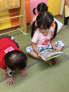 絵本を読んでもらったり自分で見たりすることで、気持ちが落ち着き心の安定が得られるのでしょうね![]()
