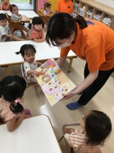 今週は、月間絵本や仕掛け絵本の読み聞かせを楽しんでいる子どもたちの様子をお伝えしたいと思います。