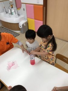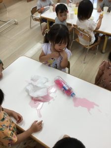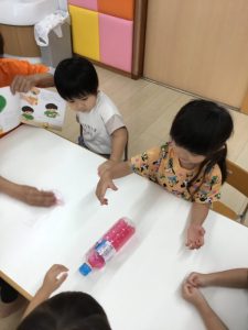 ふたをしていないとこぼれるジュースやお弁当もふたをすると…大人からすると当たり前の事が子どもたちにとっては大きな発見です。ぜひ、実体験させてあげて欲しいと思います