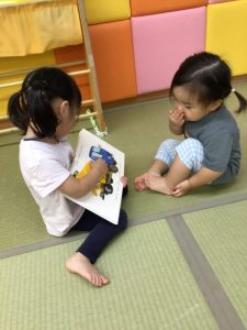 そんなパワー全開のお友だちが穏やかに絵本を楽しんでいる様子をお伝えします![]()