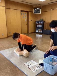 一次救命措置(心肺蘇生法)の実習 〜成人の場合〜