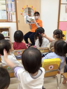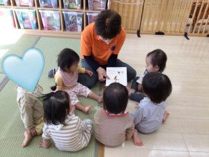 子どもたちは、お気に入りの絵本を自分でパラパラとめくってみたり、先生に読んでもらったりするのも好きですが、やはり「新しい絵本だよ~」の声を聞くと目がキラキラ![]()