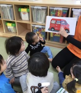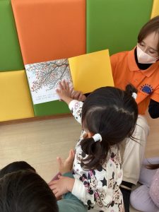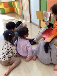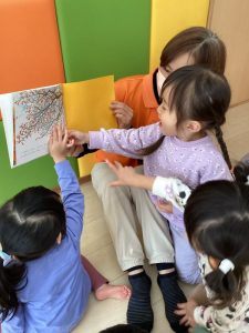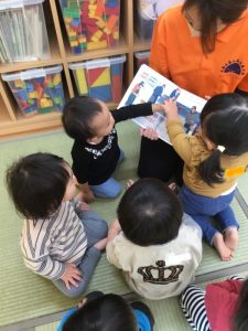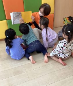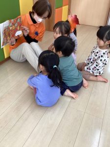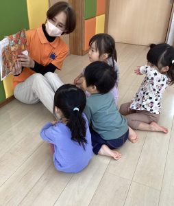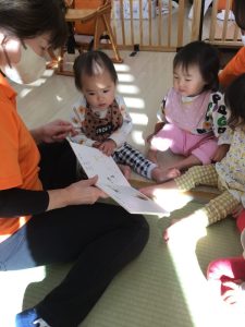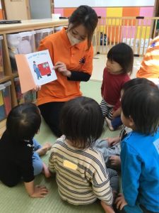 園で子どもたちが楽しく絵本を読んでもらっている様子も一緒に見ていただけたら嬉しいです