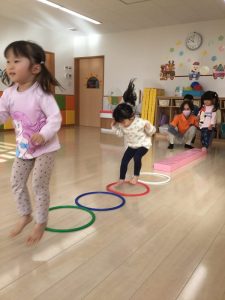 いちご組はジャンプもしっかり跳べて、りんご組は連続ジャンプもできます。