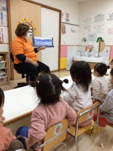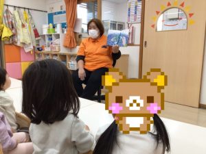 」と立ち止まり順番に触ったり踏んだりしてみました。その甲斐あって今まで不思議そうな顔をしてみていた「しも」の絵本に興味を持ち始めるようになった子どもたちでした![]()