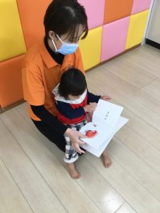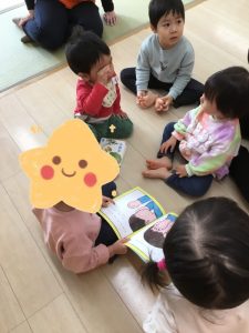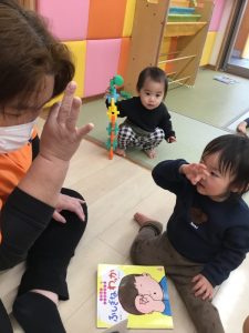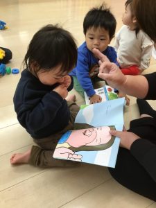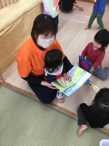 登園して来るとすぐ本棚に行き「どれにしようかなぁ~🤔❓」と絵本を選び、膝の上が空いている先生を見つけて「チョコン」「これ、読んでぇ~」と満足げな表情になる子や先生の前に座って「一緒に見よう」と誘ってくれる子も・・・