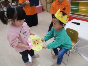 の歌を歌ってくれたり、かんむりやカードを手渡してくれたりして心温まるひと時を過ごす事ができました![]()