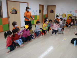 フラッシュカード・絵本の読み聞かせ・体操・リトミック・英語の育脳カリキュラムを毎日取り入れています![]()