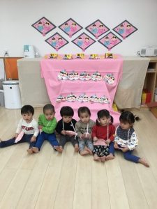 りんご組の保育室はひな祭りムード満載です![]()