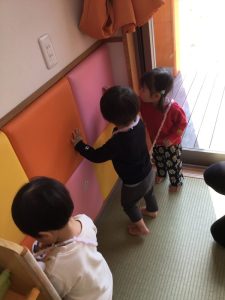 りんご組さんは廊下を散策中![]()